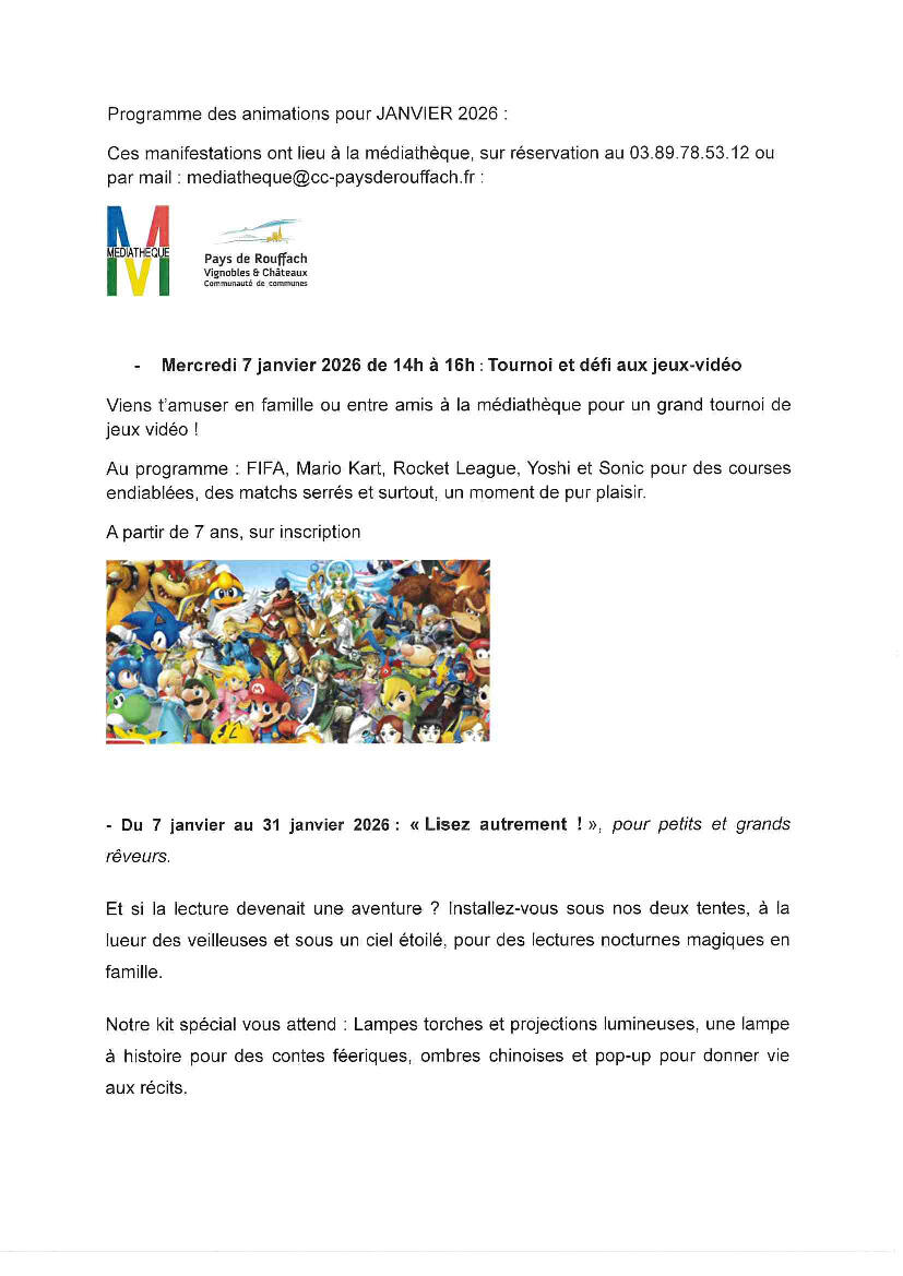 Programme Médiathèque - Janvier 2026 25/09/2025 Le nouveau programme des animations pour Janvier 2026 à la Médiathèque est consultable dès à présent