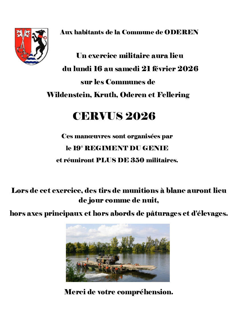 Votre mairie / Actualités / EXERCICE MILITAIRE CERVUS