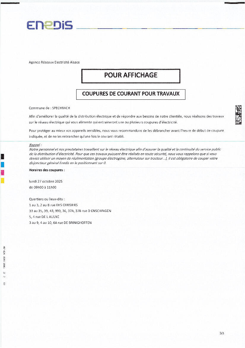 Coupure d'électricité ⚡ lundi 27 octobre