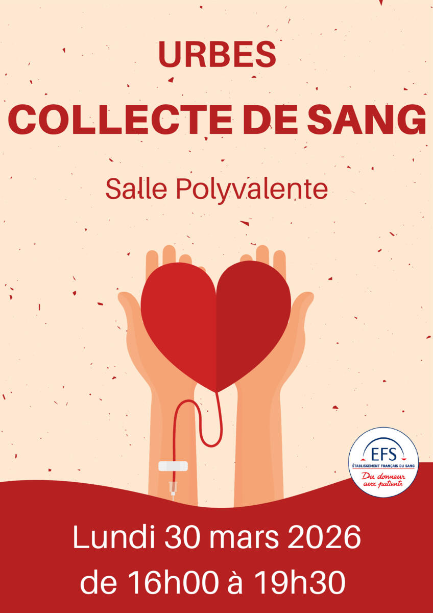Le prochain don du sang aura lieu à la Salle des fêtes d’Urbès :