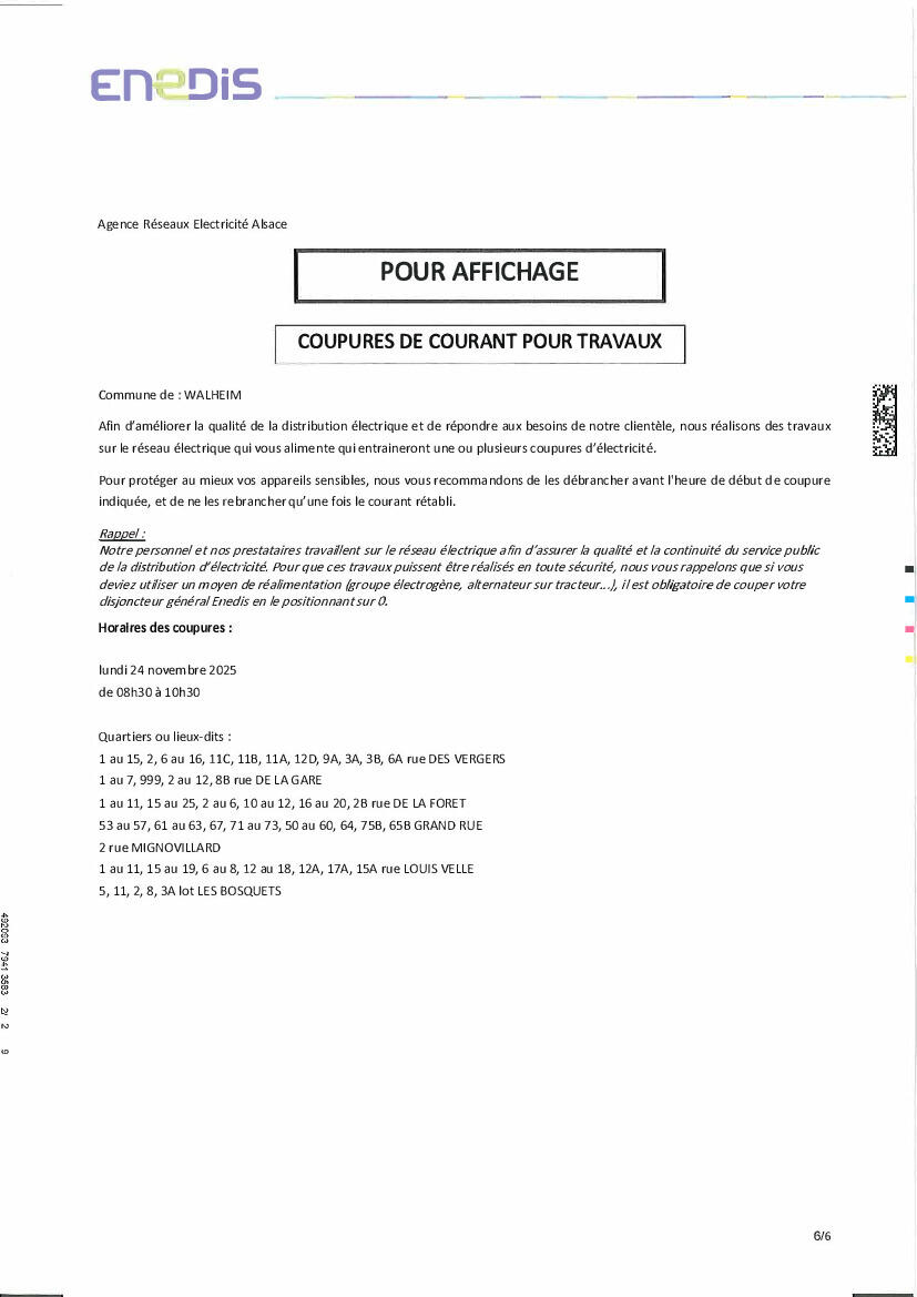 Coupures de courant partielles le 24/11 de 8h15 à 10h45