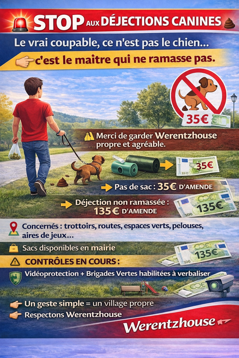 Votre mairie / Actualités / 🚨 STOP AUX DÉJECTIONS CANINES DANS L’ESPACE PUBLIC 💩