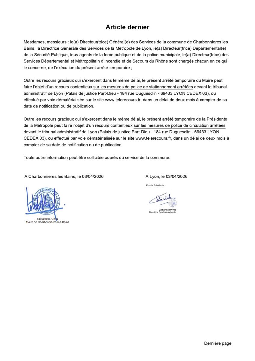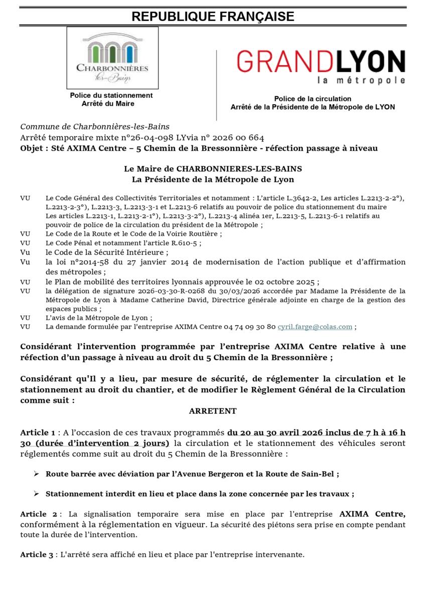 📅 Période des travaux : du 20 au 30 avril 2026 inclus