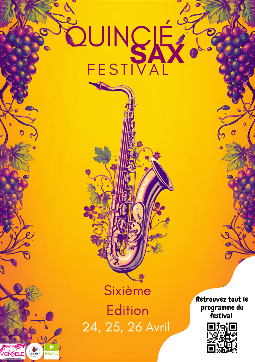 Dans le cadre de la sixième édition du Quincié Sax Fest (24-26 avril 2026), nous souhaitions vous informer de cet événement musical se déroulant sur le territoire.