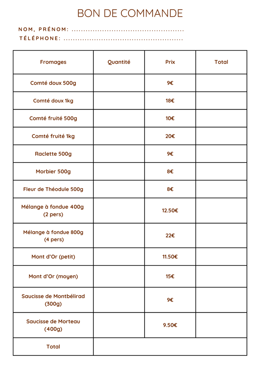 Le CPE de l’École du Loup propose une vente de fromages de la Fruitière des lacs dans le Doubs.