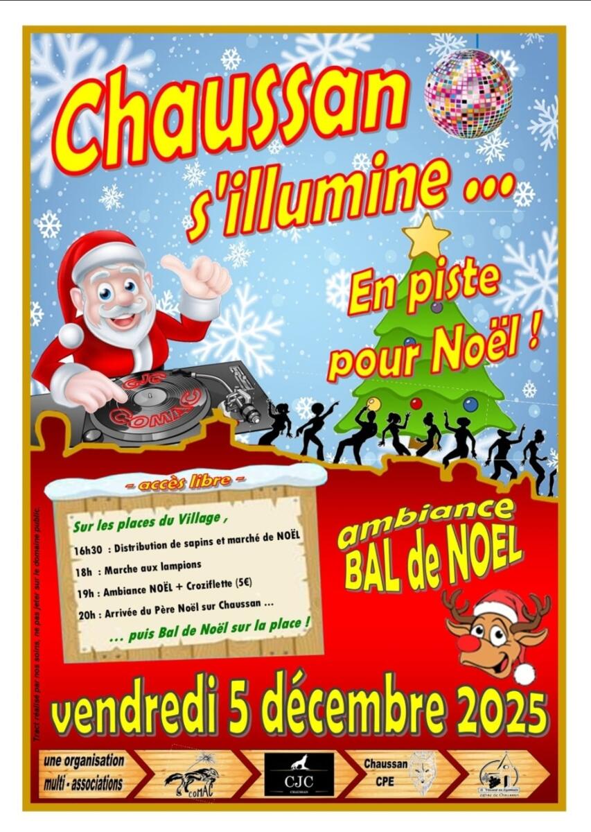 Rendez-vous le vendredi 05 décembre à partir de 16h30 au centre de Chaussan pour l'ouverture des festivités de Noël