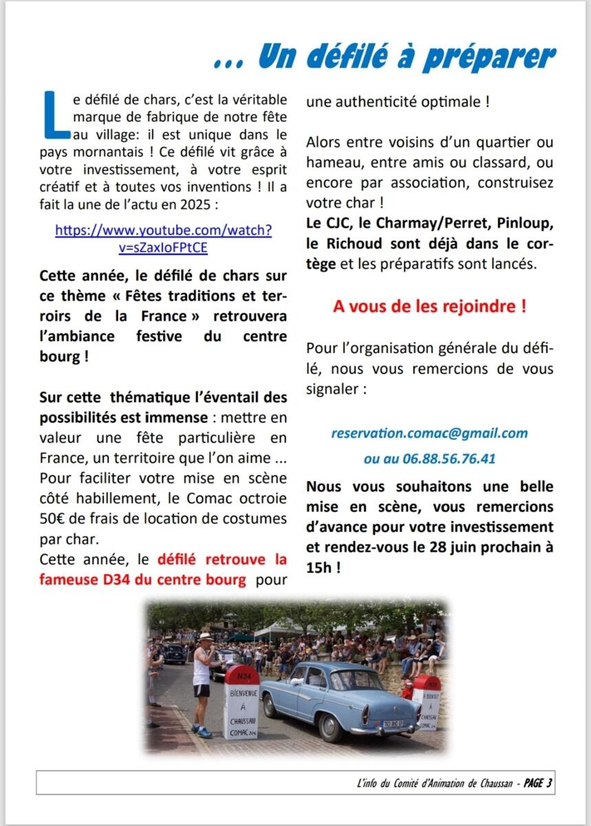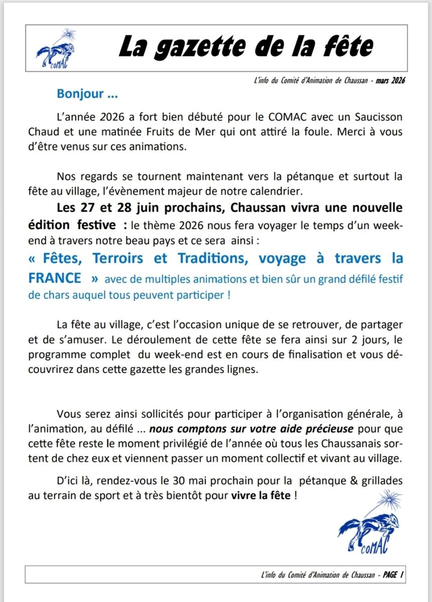 Comme chaque année, votre implication est précieuse, car c'est l'esprit de cette fête depuis tant d'années de rassembler tous les Chaussanais.👏👏