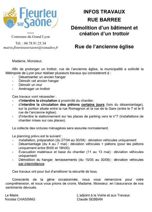 Infos Travaux - Rue de l'ancienne église barrée