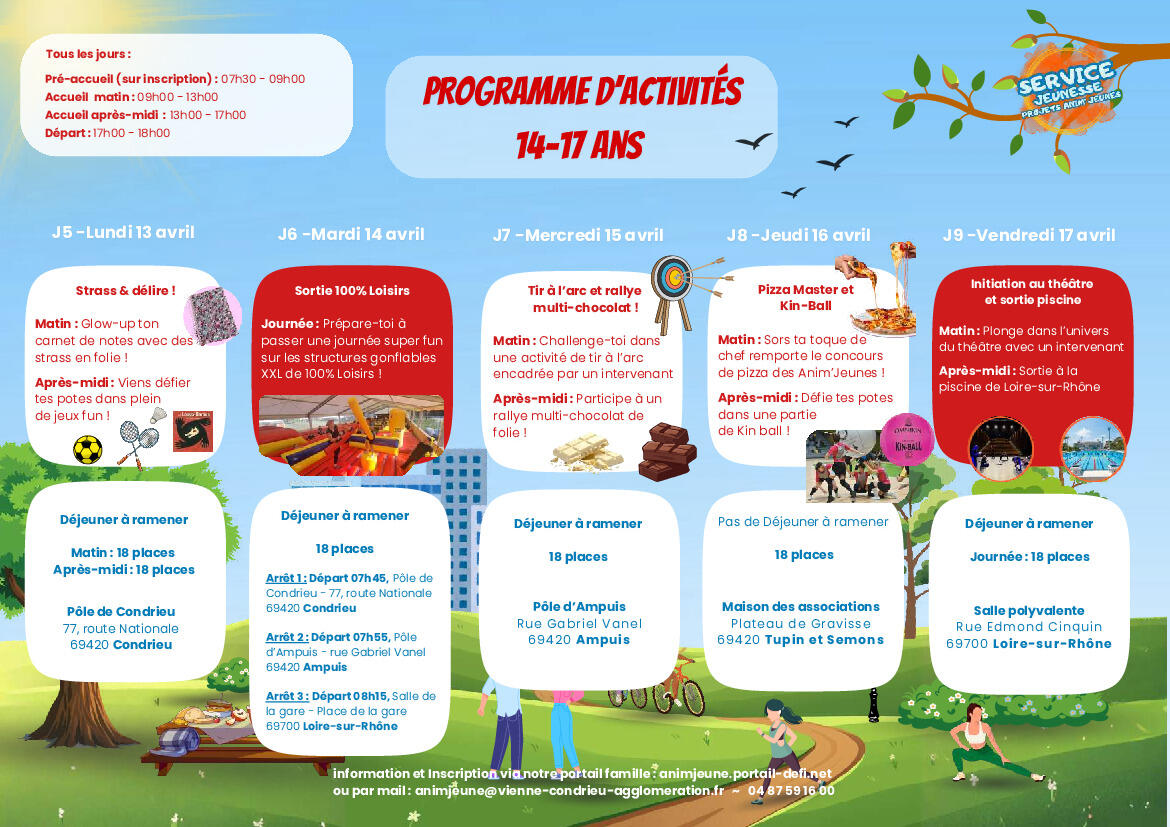 Programme Anim'jeunes pour les 14-17 ans vacances de printem