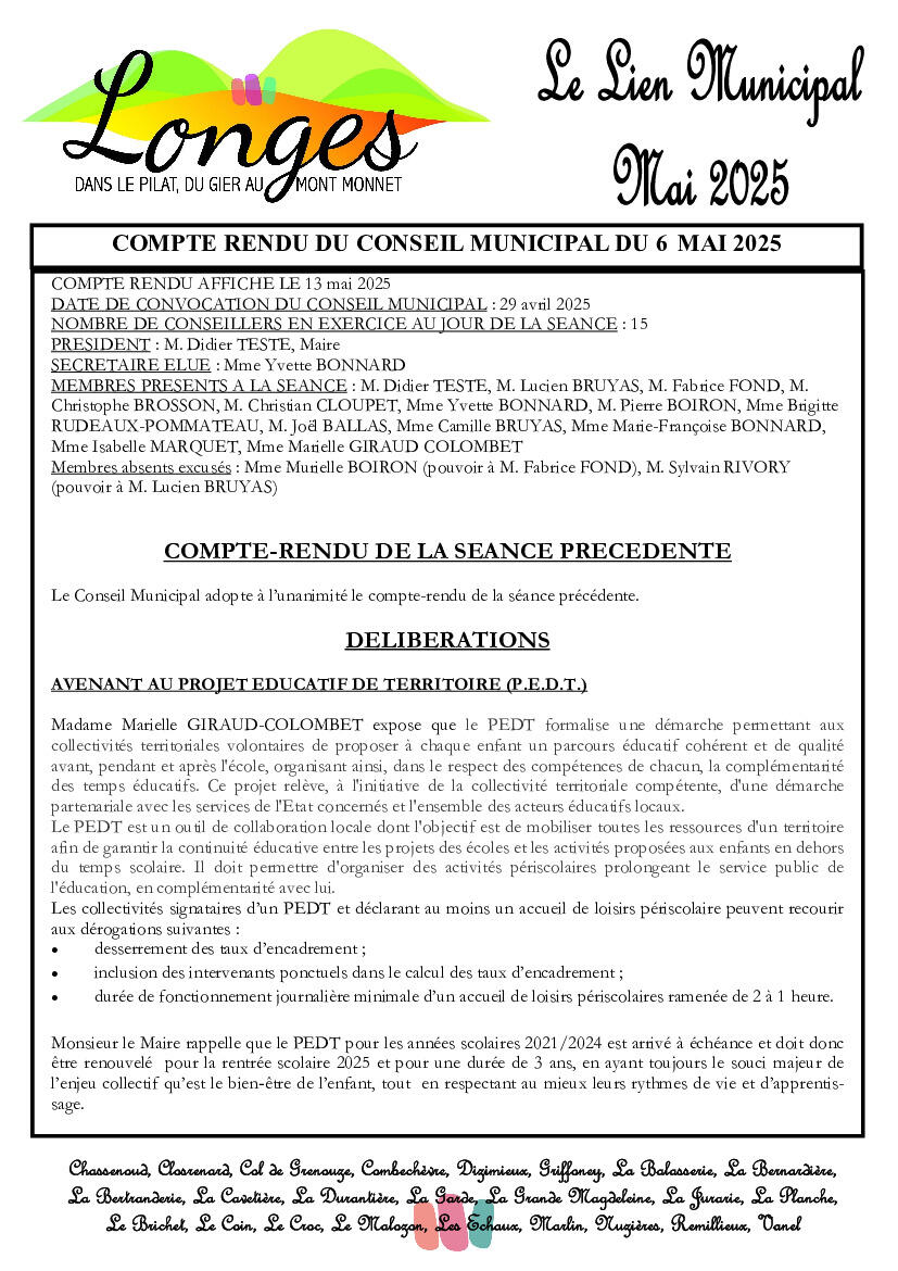 Votre mairie / Actualités / 📫Lien Municipal Mai 2025 📰