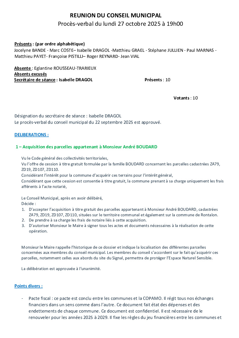 Procès-verbaux conseils municipaux 19/12/2025 Bonjour, vous trouverez ci-joint les procès-verbaux des derniers conseil municipaux. La Mairie. Source : Mairie de Saint-André-la-Côte