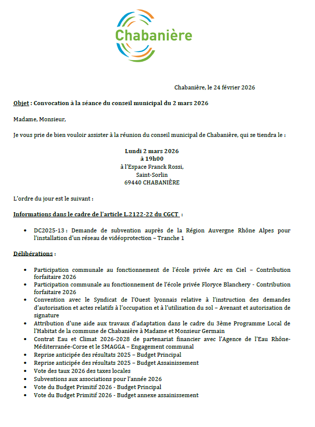 Toute l'actualité de Mairie de Chabanière