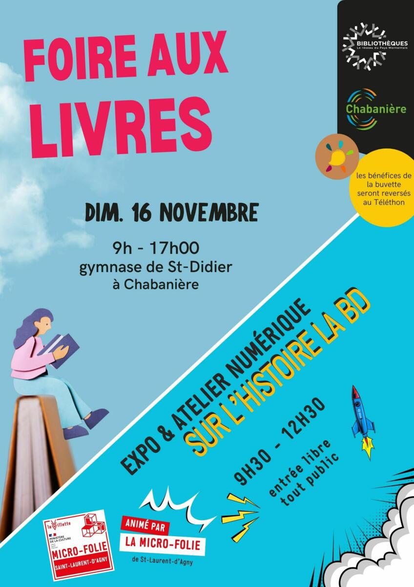En parallèle de la foire aux livres, Retrouvez la Microfolie de St Laurent d'Agny pour explorer l'histoire de la BD autour d'une expo et d'un atelier numérique sur tablettes.