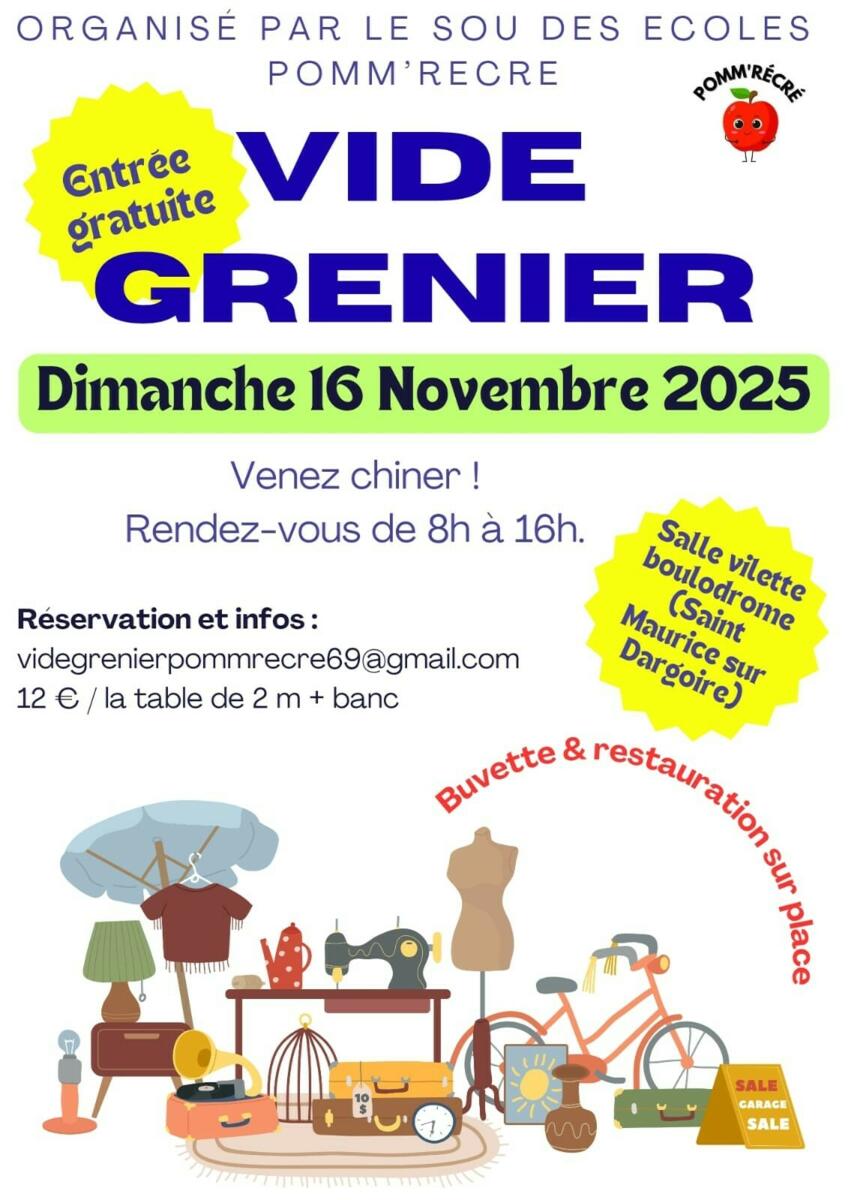 L’association Pomm’Récré organise son vide-grenier ce dimanche 16 novembre de 8h à 18h à la salle Villette (Saint-Maurice).