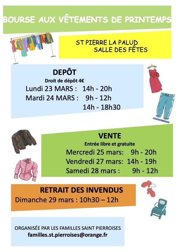 Bourse aux vêtements 12/03/2026 Bourse aux vêtements de Printemps Du 23 au 29 mars A la salle des Fêtes