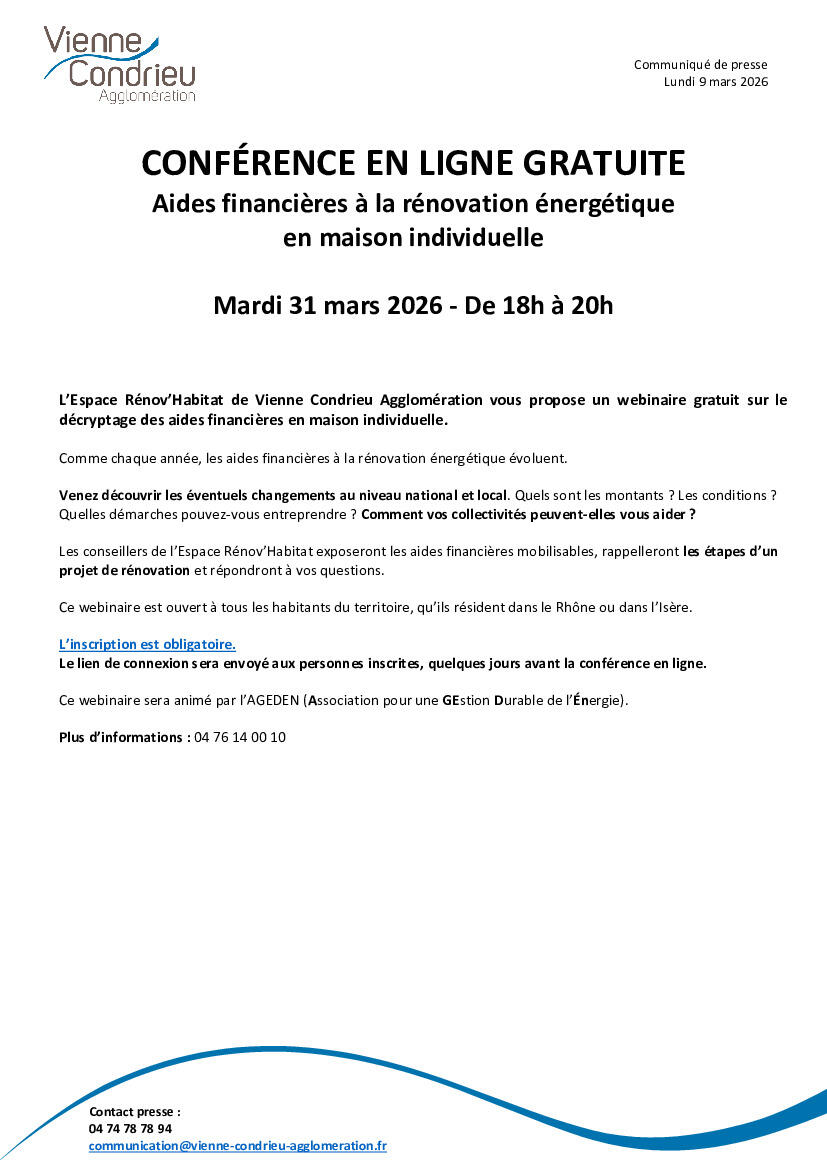 Rénovation Énergétique - Webinaire Aides Financières 27/03/2026 Mardi 31 Mars à 18h00 Animation gratuite - Inscription obligatoire