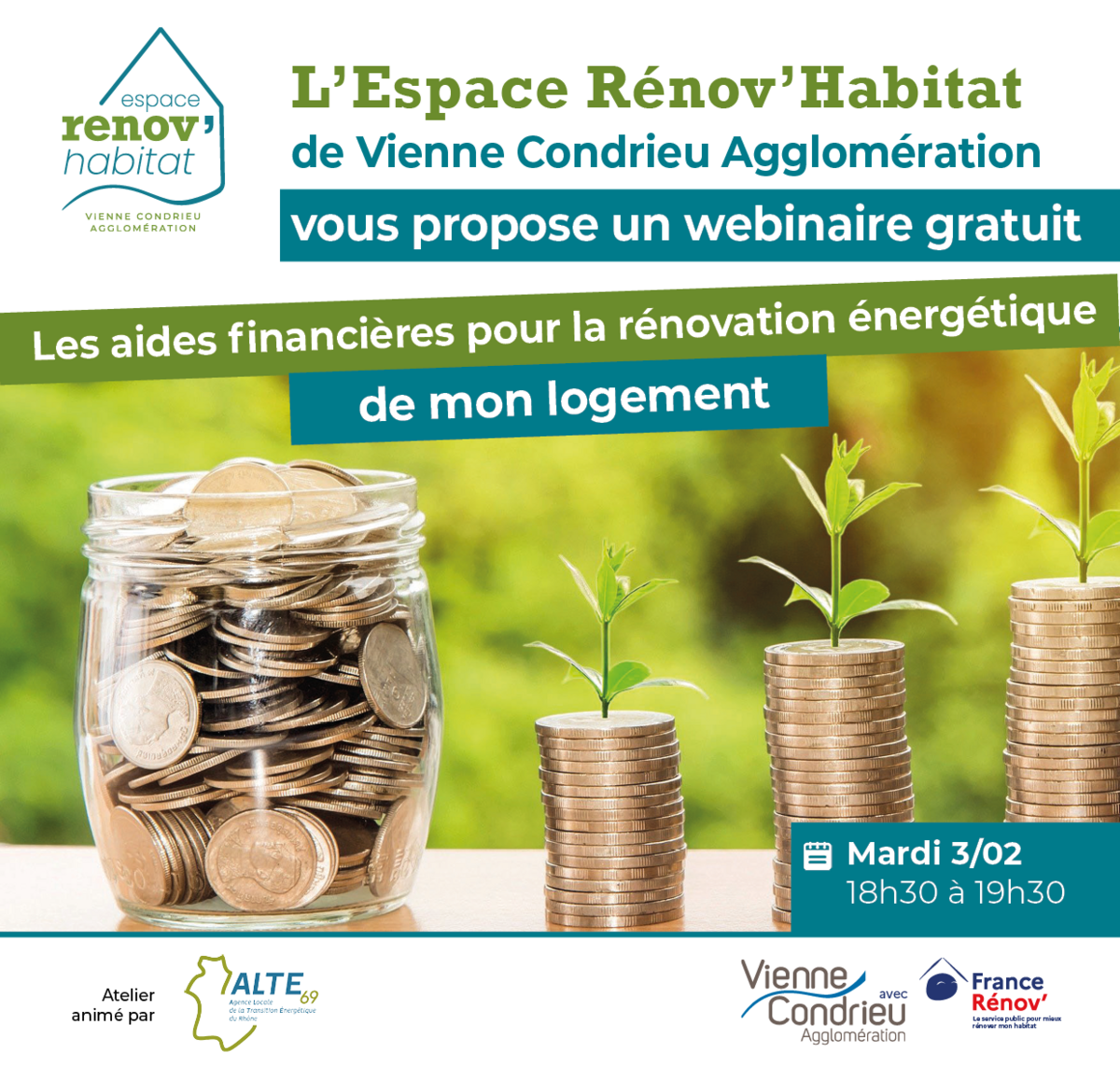 L'Espace Rénov'Habitat de l'Agglo propose un webinaire gratuit sur le thème des aides financières disponibles pour la rénovation énergétique des logements