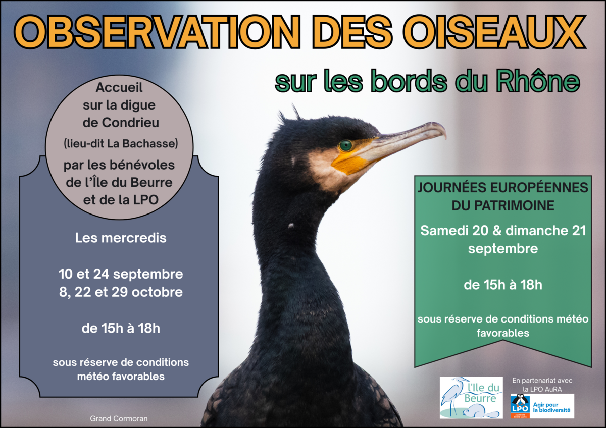 Mercredis 10 et 24 septembre, samedi 20 et dimanche 21 septembre (15h00 - 18h00): observation des oiseaux