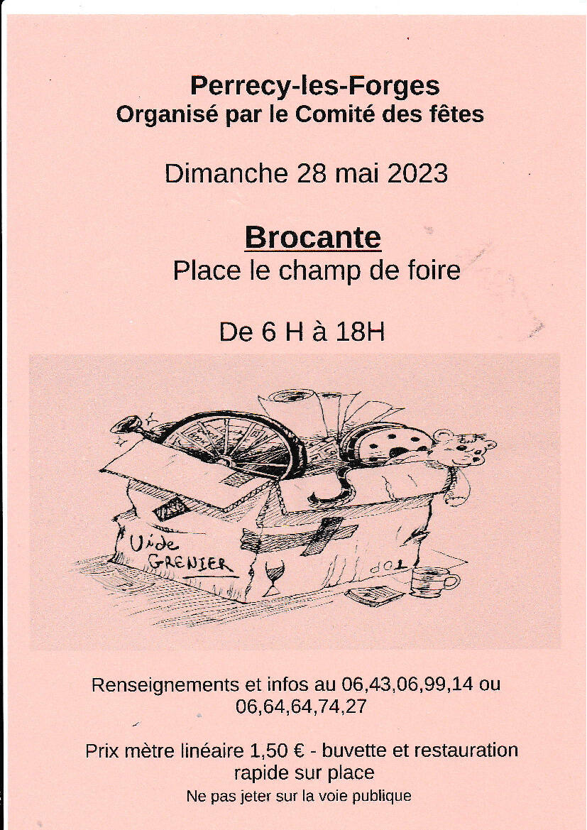 BROCANTE 09/05/2023 Brocante Dimanche 28 mai 2023 organisée par le comité des fêtes de Perrecy-les-Forges