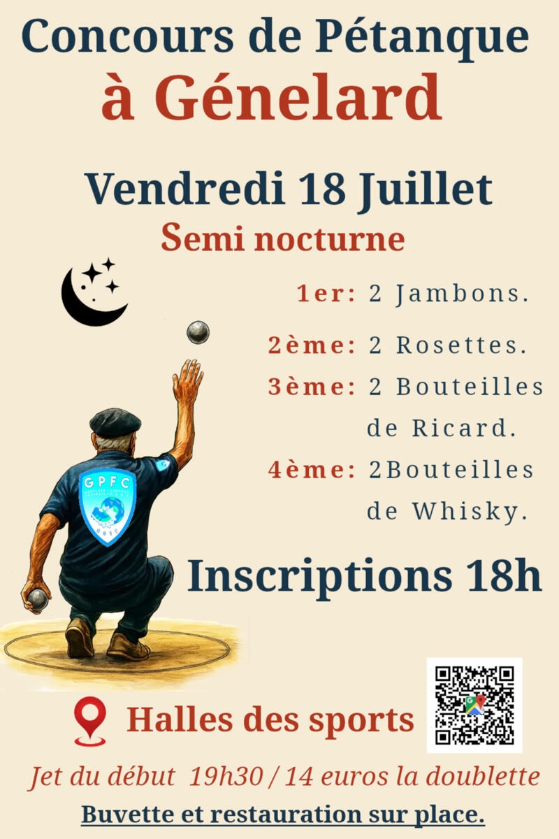 Concours pétanque GPFC 11/07/2025 Vendredi 18 juillet 2025 Halle des sports Maurice DELEY de Génelard
