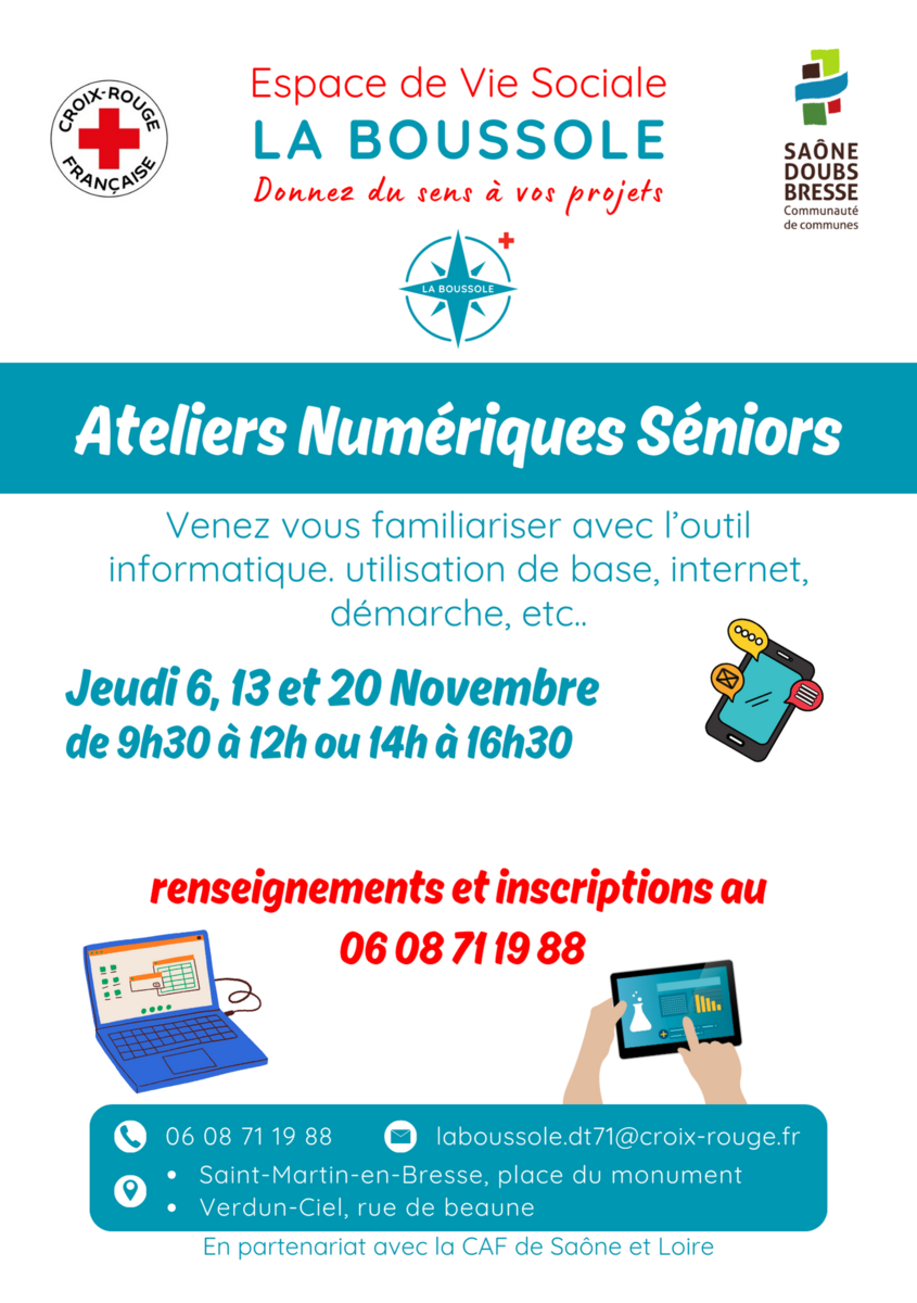 Espace de Vie Sociale La Boussole 06/10/2025 Des réunions d'information , des formations sont à votre disposition à Verdun -Ciel.