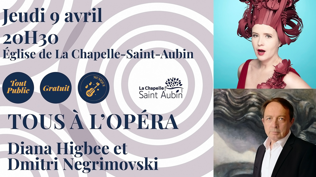 Ce concert, présenté par la soprano Diana Higbee et le pianiste Dmitri Negrimovski, est une invitation enchanteresse à découvrir l’opéra autrement, accessible à tous pour les petits et les plus grands. Ce duo complice vous fera voyager à travers quatre siècles de chefs-d’oeuvre, de Monteverdi à Mozart, de Bizet à Puccini, dans une atmosphère chaleureuse et conviviale.
