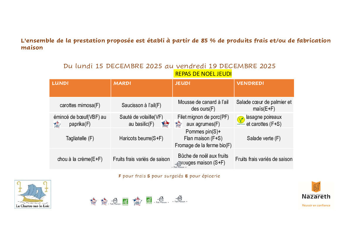 📅 Menus de la cantine - semaine 52