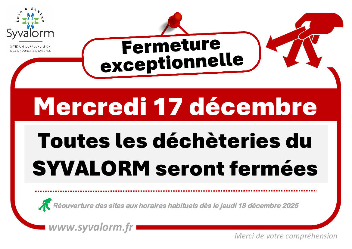 📢 SYVALORM ❗ Fermeture exceptionnelle des déchèteries