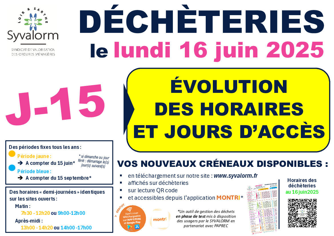 Le SYVALORM réorganise ses horaires et jours d'accès en déchèteries à compter du lundi 16 juin 2025.