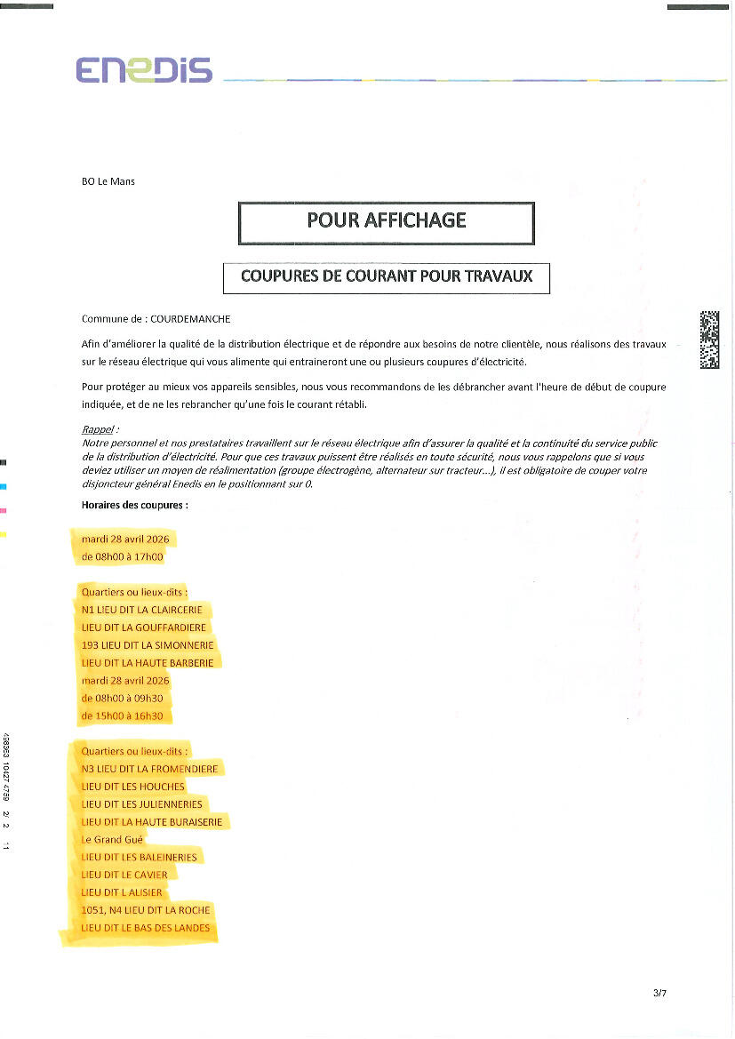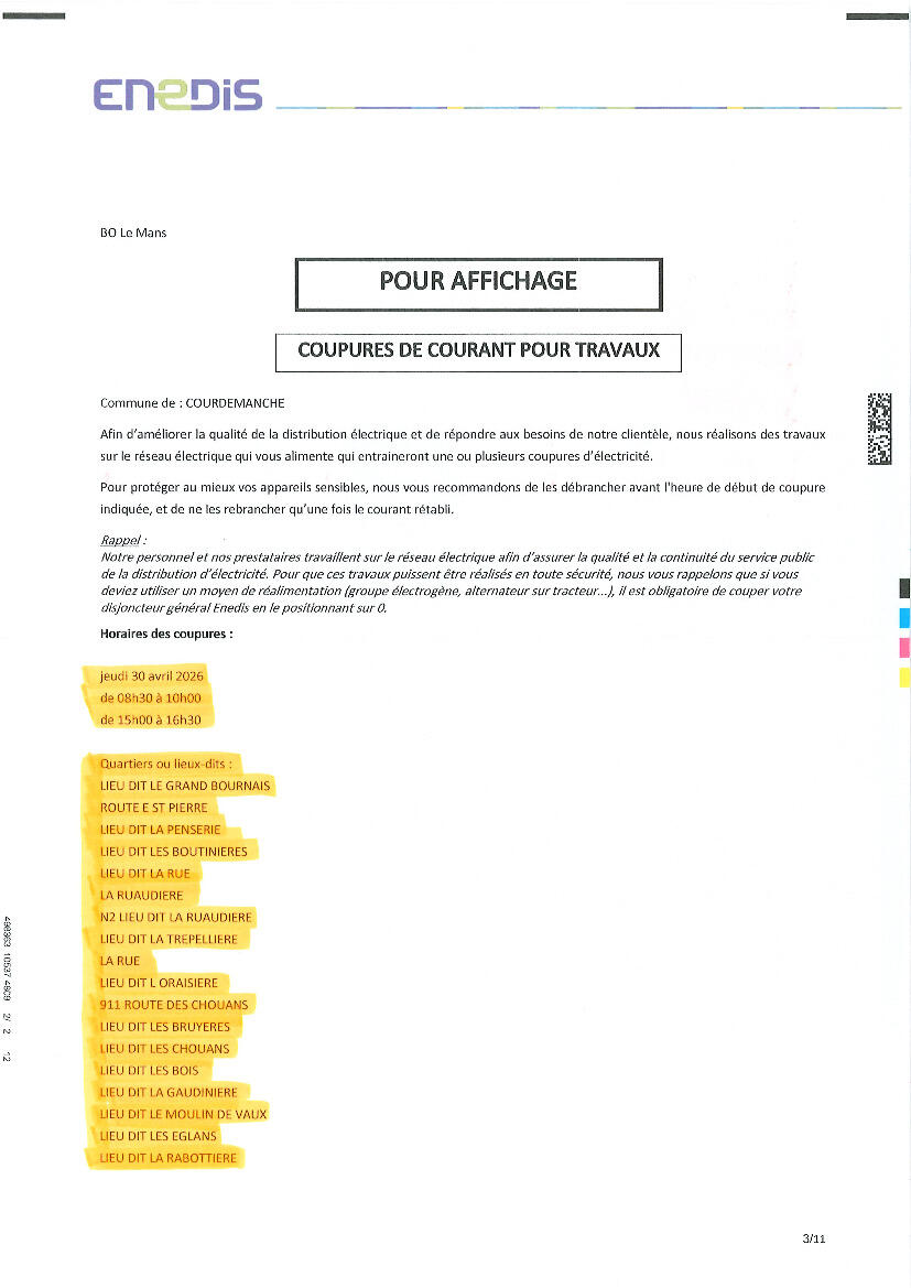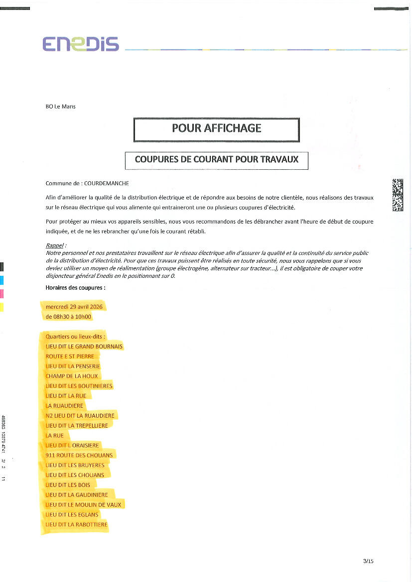 COUPURES DE COURANT POUR TRAVAUX