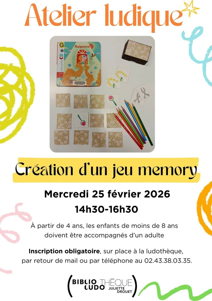 - le mercredi 25 février, de 14h30 à 16h30 : création d'un jeu de memory à partir d'un livre ! Vous pouvez apporter un livre de chez vous ou choisir parmi une sélection sur place.
