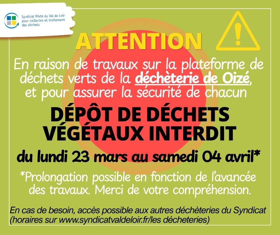 / OIZE - Dépôt déchets verts interdits du 23 Mars au 04 Avril