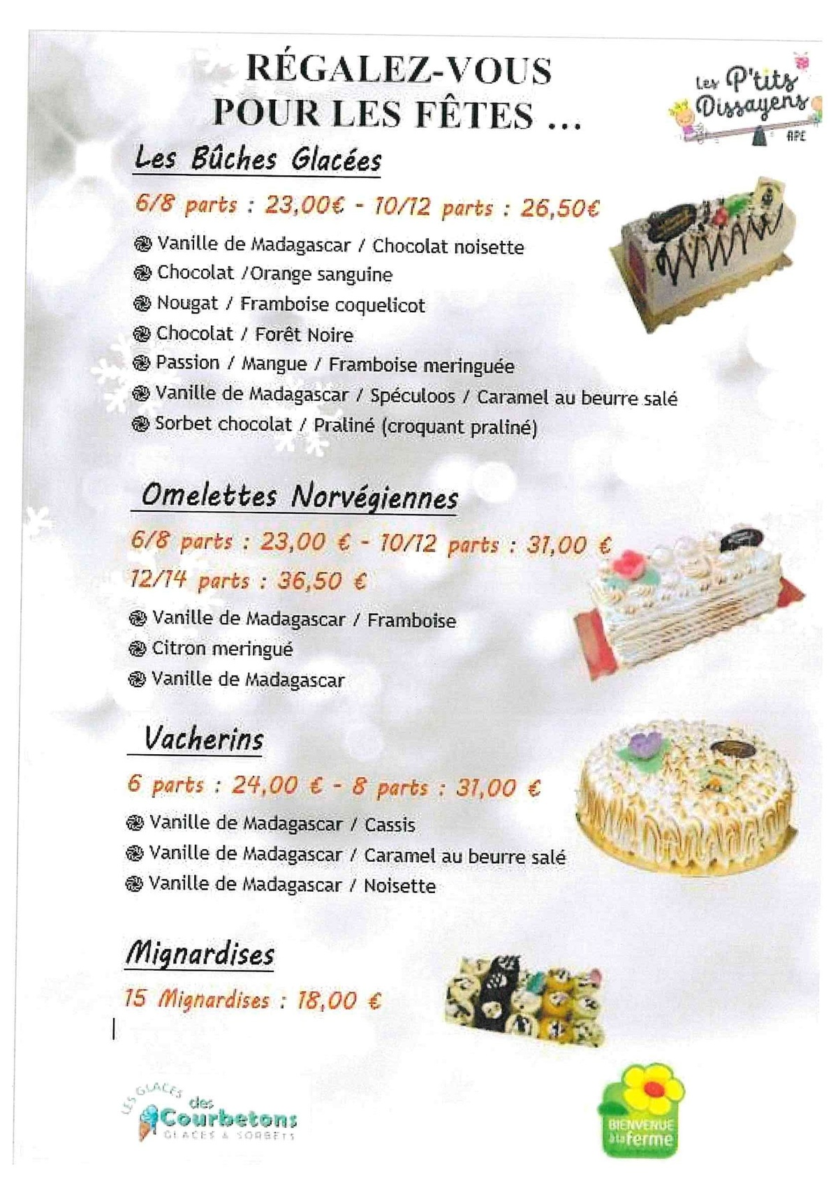 VENTE DE DESSERTS GLACES POUR LES FETES