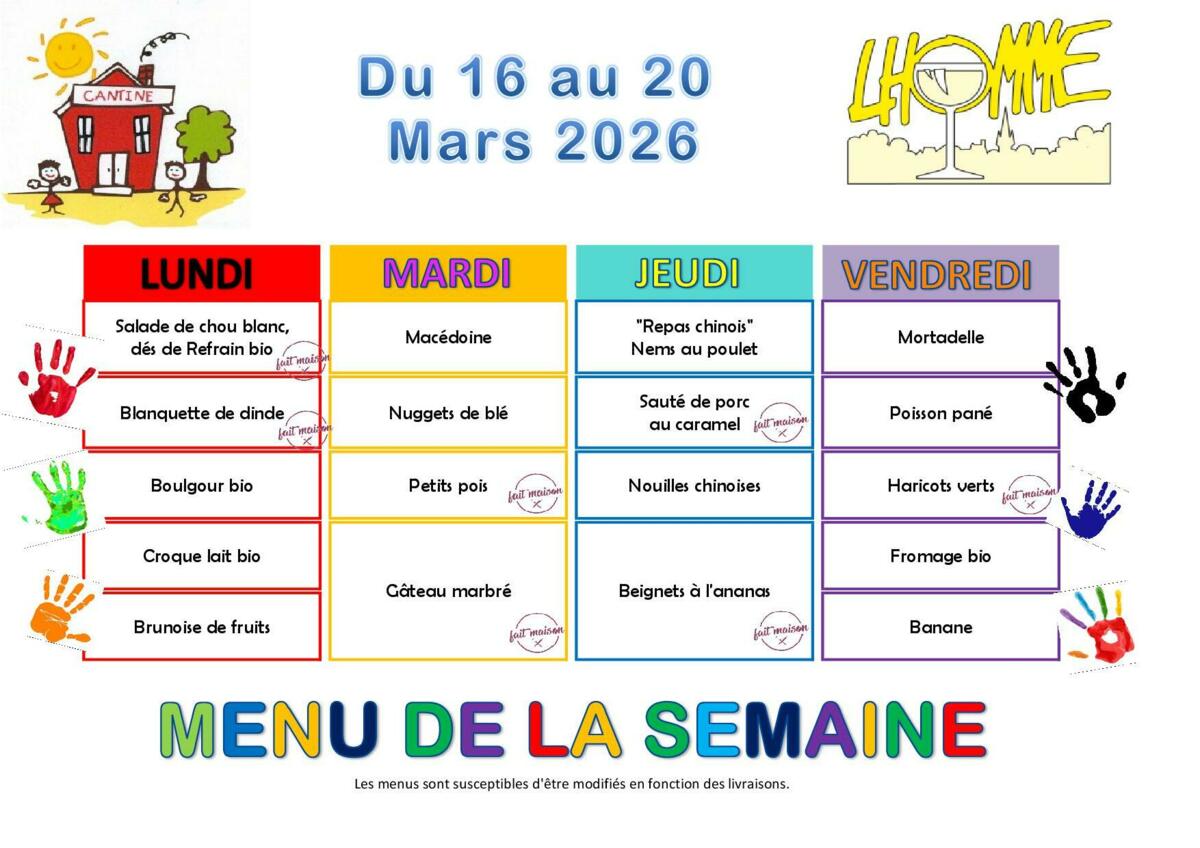 Menu de l'école de Lhomme