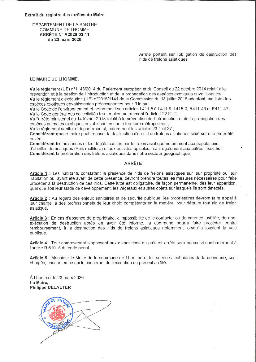 En parallèle au prêt de pièges contre les frelons asiatiques, la commune de Lhomme a décidé de rendre obligatoire la destruction des nids de frelons.