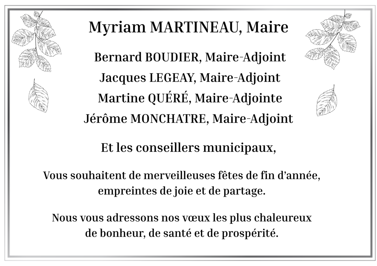 Madame le Maire et l’équipe municipale ont le plaisir de vous inviter à la cérémonie des vœux qui se tiendra :