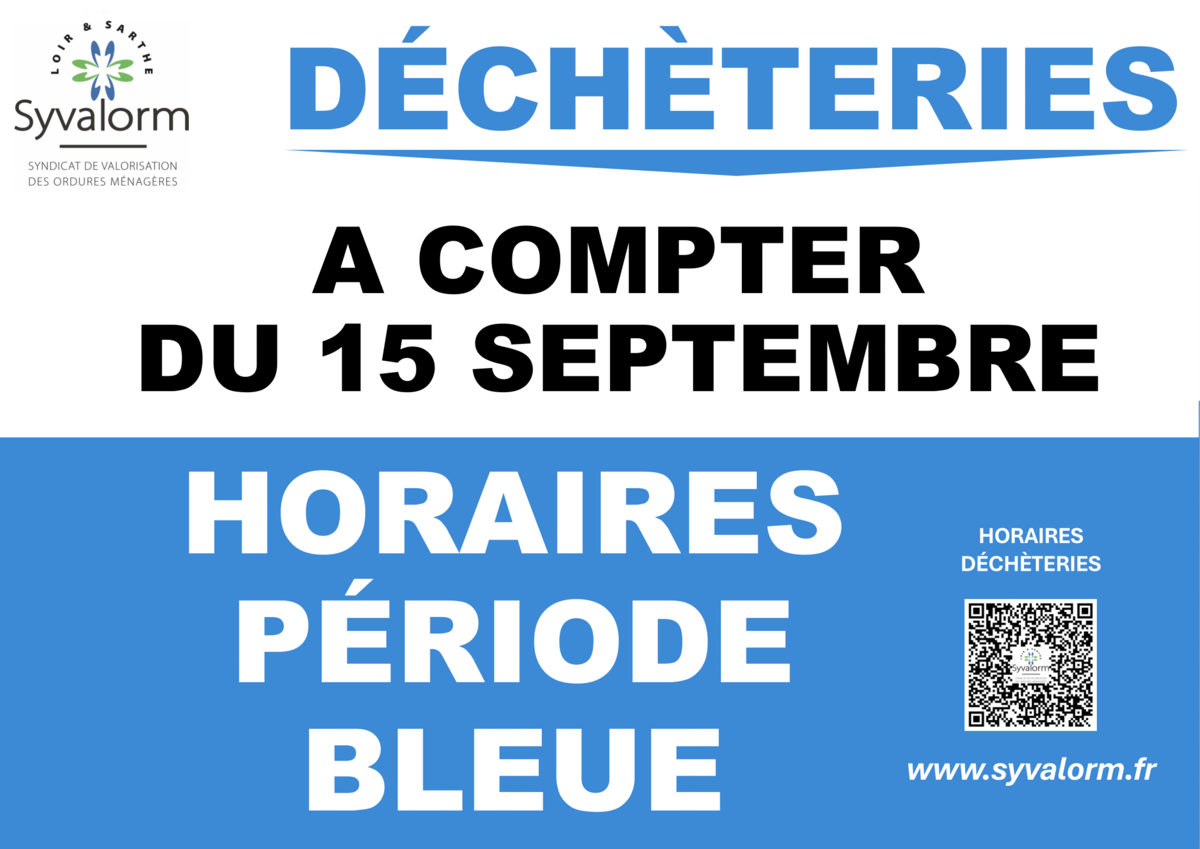 Depuis le 15 septembre 2025, les horaires de la période bleue sont en vigueur sur les 17 déchèteries SYVALORM.