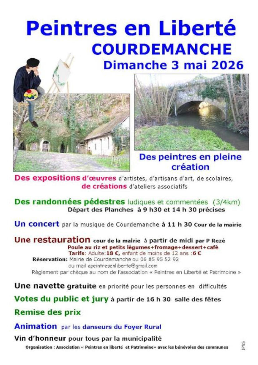Réservation pour le repas le plus tôt possible au 06 85 95 52 92 ou à la mairie de Courdemanche