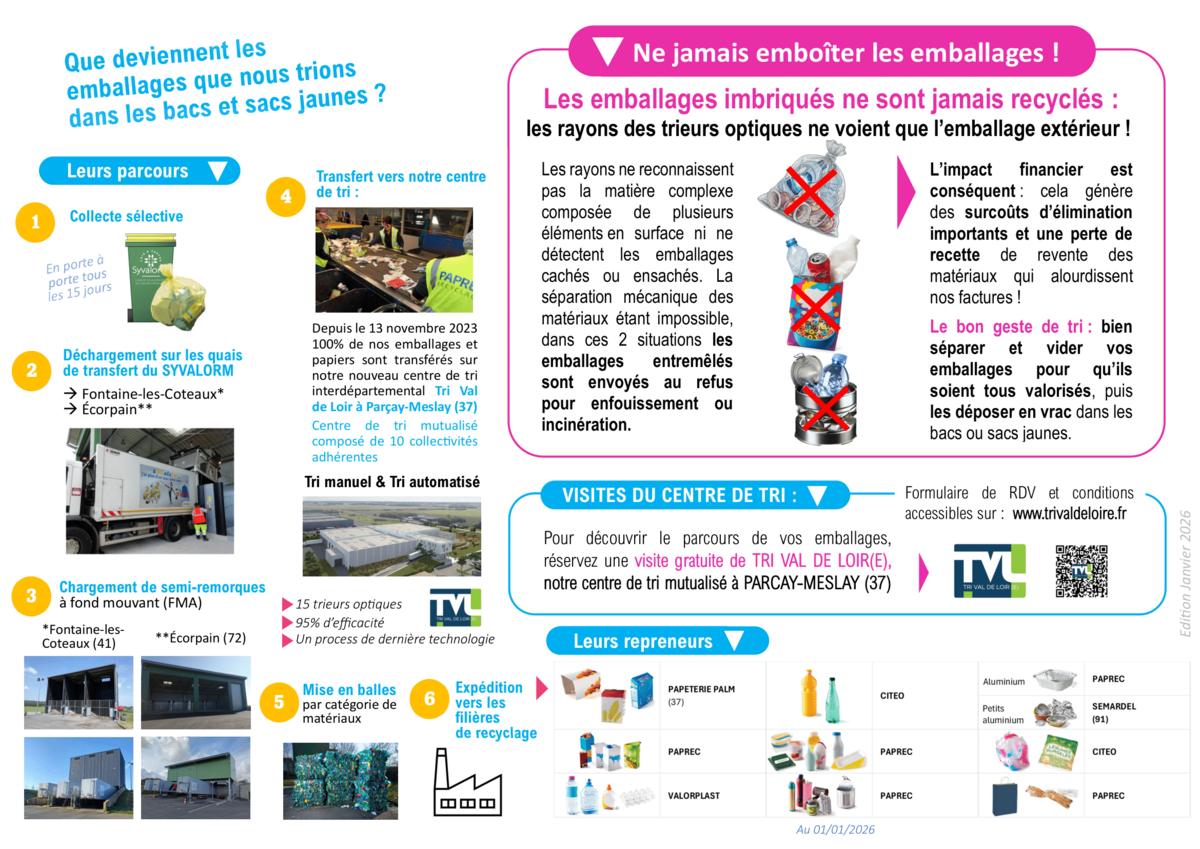 SYVALORM : ACTU DÉCHETS 02/02/2026 SYVALORM vous adresse leur nouvelle fiche « ACTU Déchets N°11 » : Les emballages imbriqués = refus !