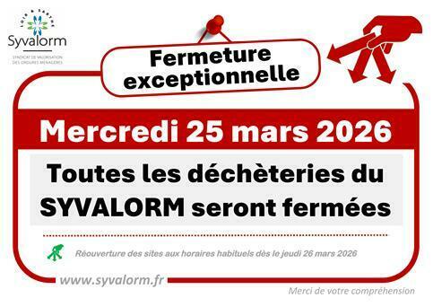 Votre mairie / Actualités / SYVALORM : FERMETURE EXCEPTIONNELLE