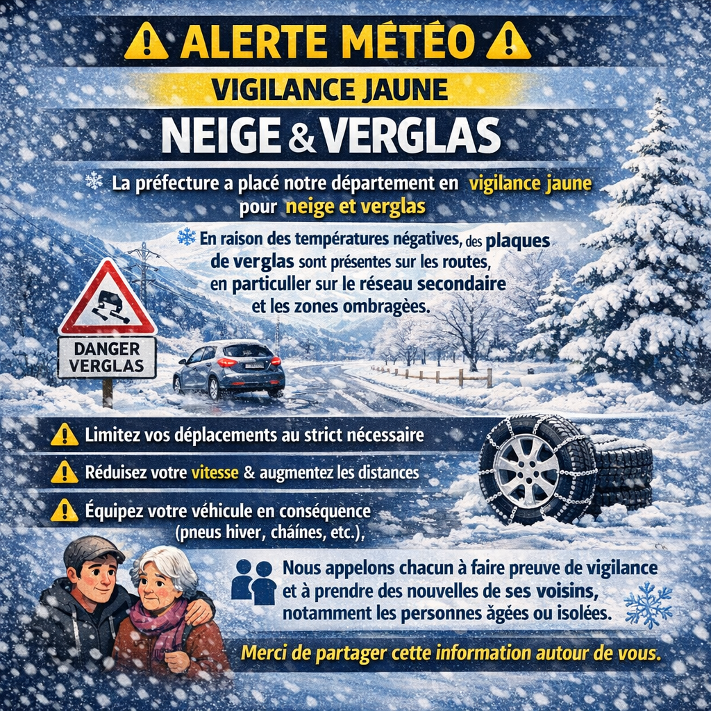 ⚠️ Alerte Météo - Vigilance Jaune Neige et Verglas ⚠️