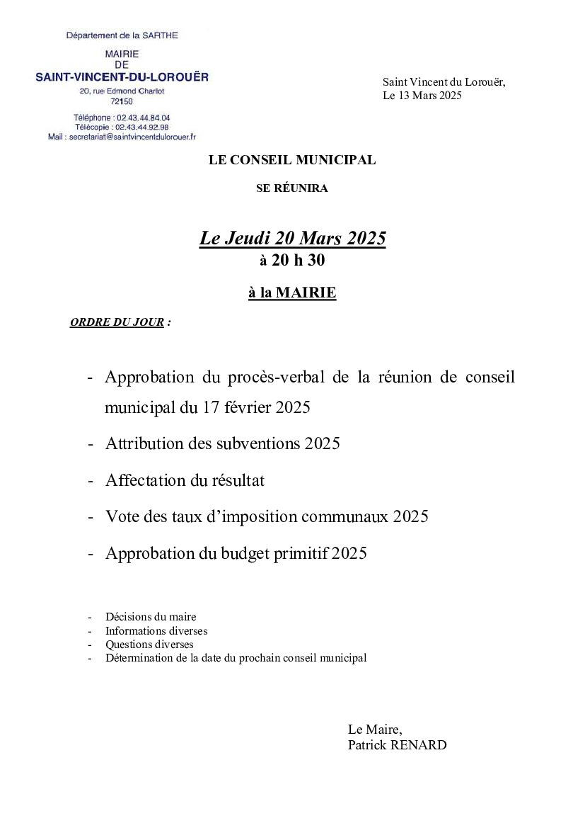 CONSEIL MUNICIPAL DU 20 MARS 2025