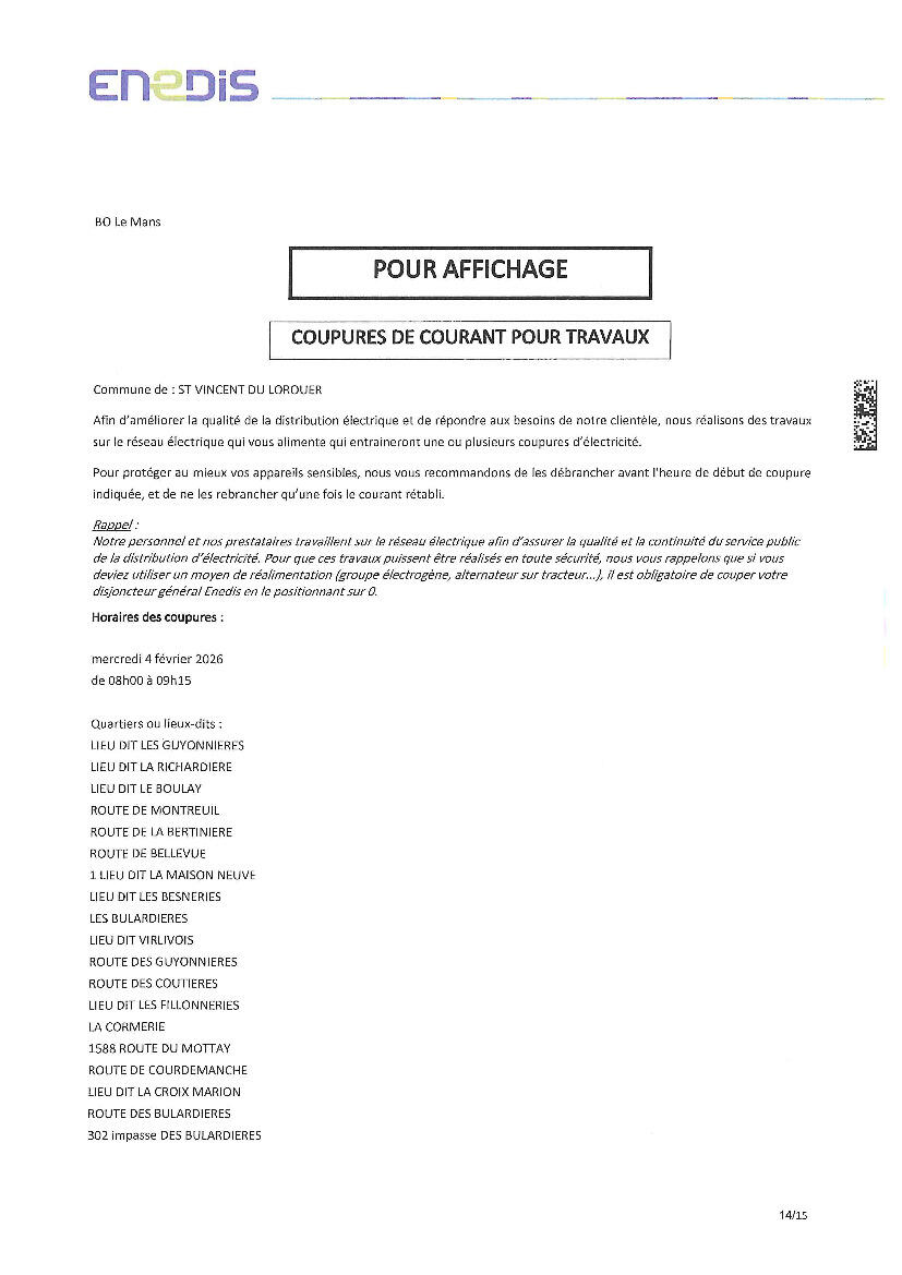 COUPURE ELECTRICITE MERCREDI 4 FEVRIER 2026 de 8h00 à 9h30