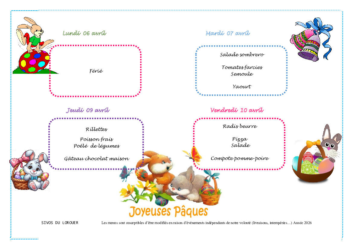 Votre mairie / Actualités / 😋 MENUS CANTINE SCOLAIRE - du 07/04 au 10/04 🍽