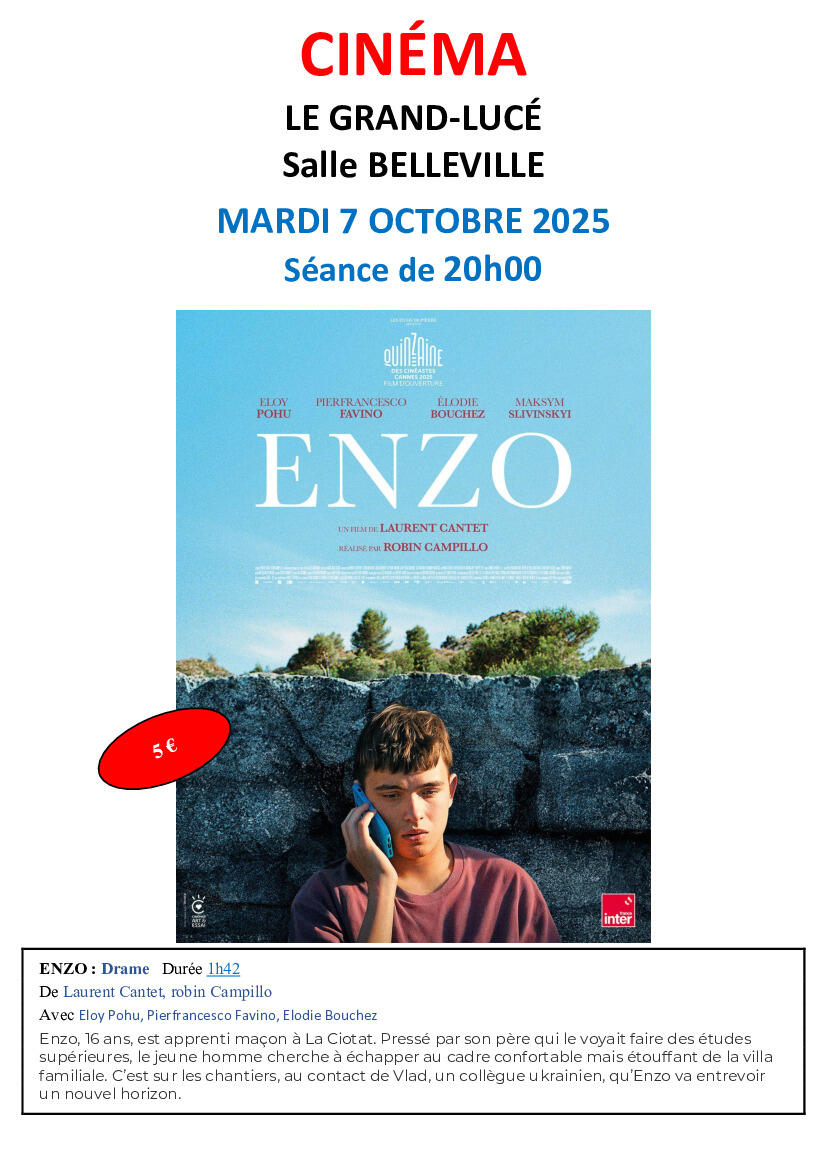 👉 Enzo, 16 ans, est apprenti maçon à La Ciotat. Pressé par son père qui le voyait faire des études supérieures, le jeune homme cherche à échapper au cadre confortable mais étouffant de la villa familiale. C’est sur les chantiers, au contact de Vlad, un collègue ukrainien, qu’Enzo va entrevoir un nouvel horizon.
