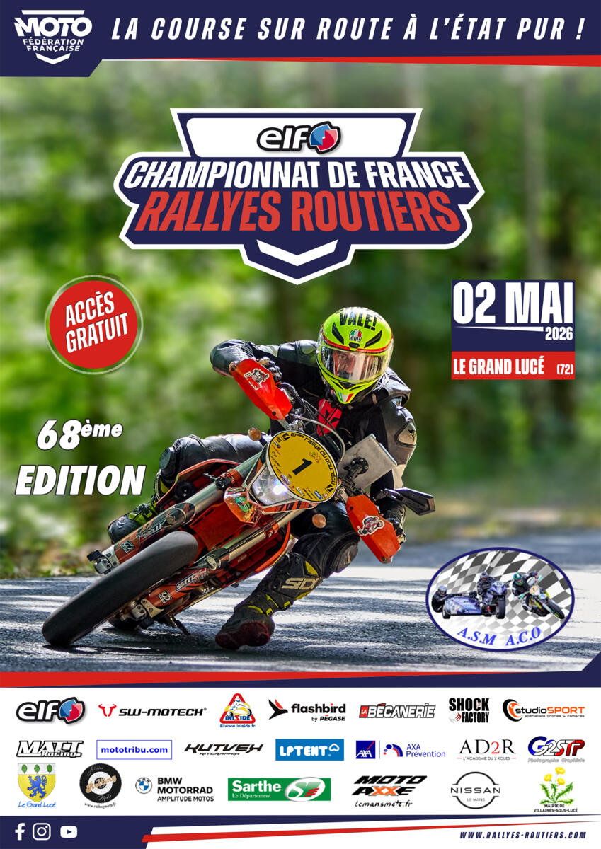 L'Association Sportive Motocycliste de l'Automobile Club de l'Ouest (ASM ACO) organise son 68ème rallye national motocycliste de la Sarthe samedi 2 mai 2026.
