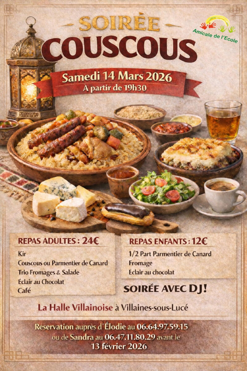 Soirée Couscous Amicale de l'école 14 mars 26