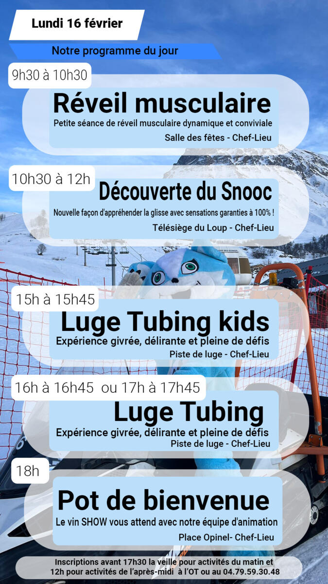 Bonjour, voici les animations prévues demain !