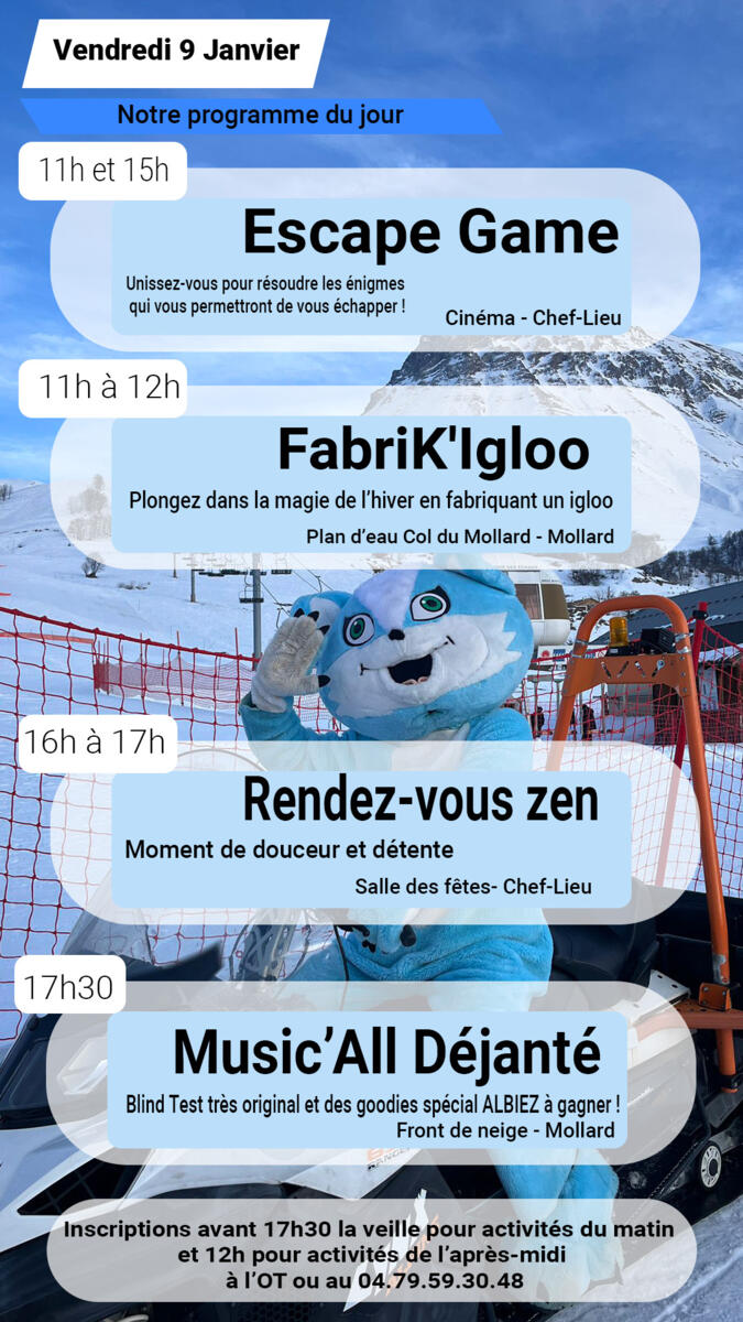Bonjour, voici les animations prévues demain !