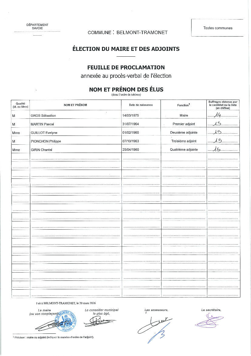Election du Maire et des Adjoints du 20 mars 2026